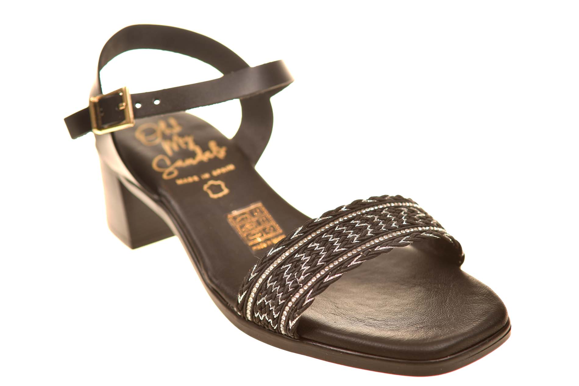 Oh My Sandals sandaal zwart met zilveren stoffen band